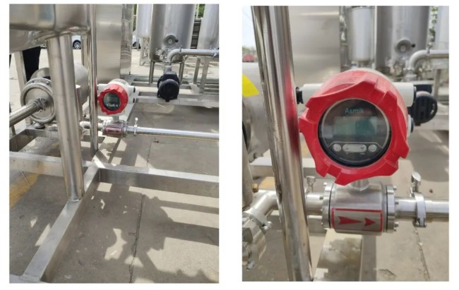 此次應(yīng)用于巴氏殺菌機是米科衛(wèi)生型不銹鋼本體電磁流量計。該款流量計采用了304不銹鋼的本體材質(zhì),保證了生產(chǎn)過程中無雜質(zhì)滲入,同時采用卡箍安裝的形式,確保接口部分易拆卸易清洗易消毒。在信號輸出上,該款流量計采用了4-20mA模擬量及RS485數(shù)字量的雙模式輸出,有效匹配各類接收設(shè)備。